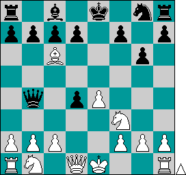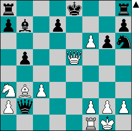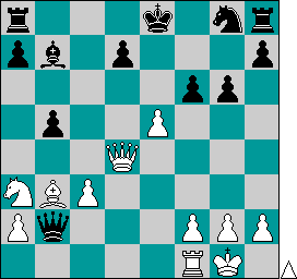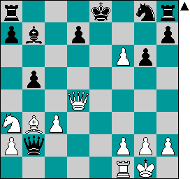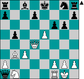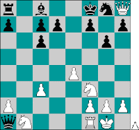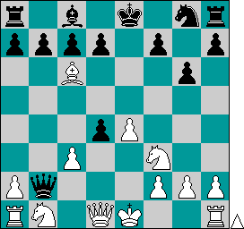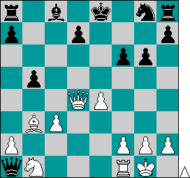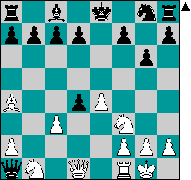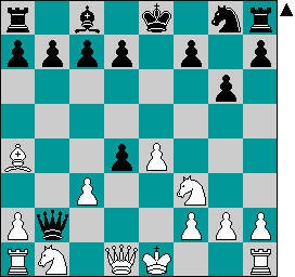 O pozitie de vis! Albul ameninta turnul Negrului din h8 si de asemenea (daca nu este nimic imediat mai bun) ameninta sa joace Qd5, atacand celalalt turn  din f7. Ceva a mers teribil de gresit cu surpriza teoretica a lui Godena!